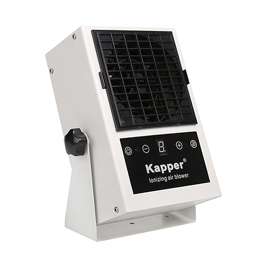2、離子風機的風速中和靜電時間由多種因素所決定,最重要的兩個原因,是離子風機的距離和風速。空氣離子不停地相互中和,陽離子、陰離子通過靜電相互吸引,形成這些電荷的轉移并且重組。高風速能使它們更遠處的中和,風速越大中和靜電越快。使用離子風機進行電子裝配時,電離的氣流應盡可能覆蓋工作區,這樣對物體表面的正負電荷才能很好的中和,使其保持中和狀態。