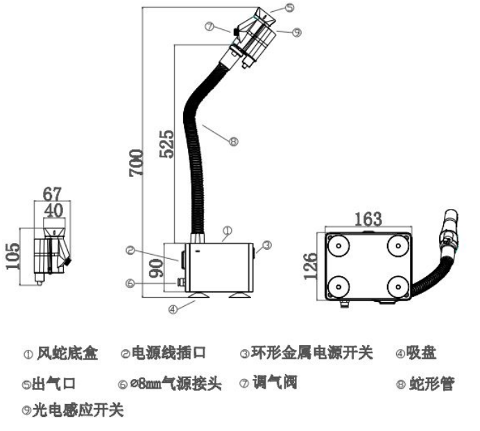 3、進入風蛇所接氣源須為過濾水分、油脂、微塵后的潔凈空氣。