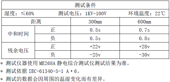 5、中和靜電迅速,平衡電壓低,安全性能高。