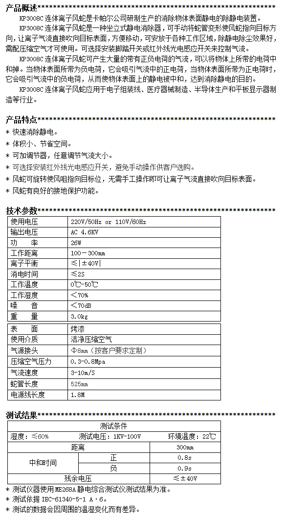 KP3008C第三代連體離子風蛇
