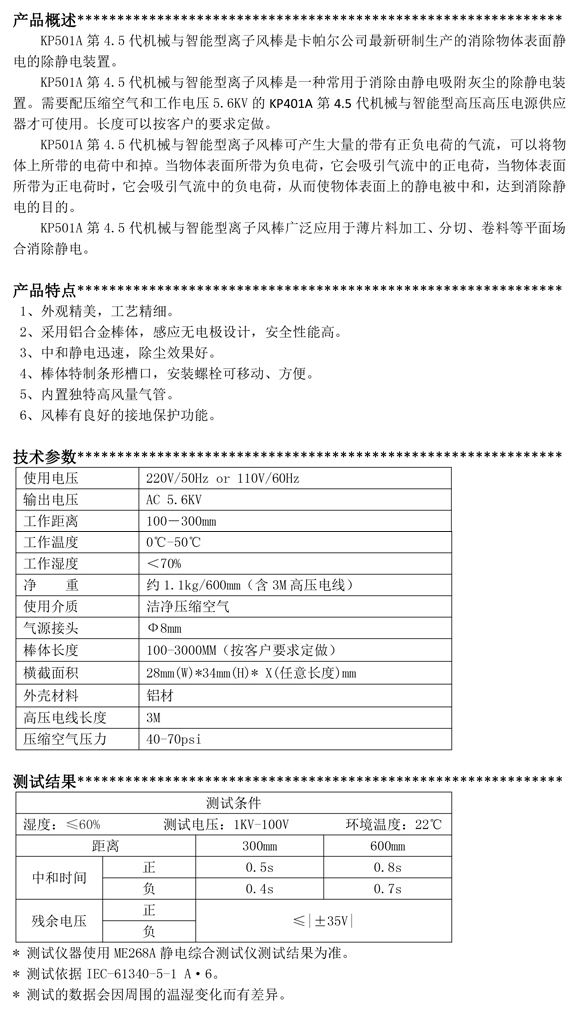 KP501A第4.5代機械與智能型離子棒