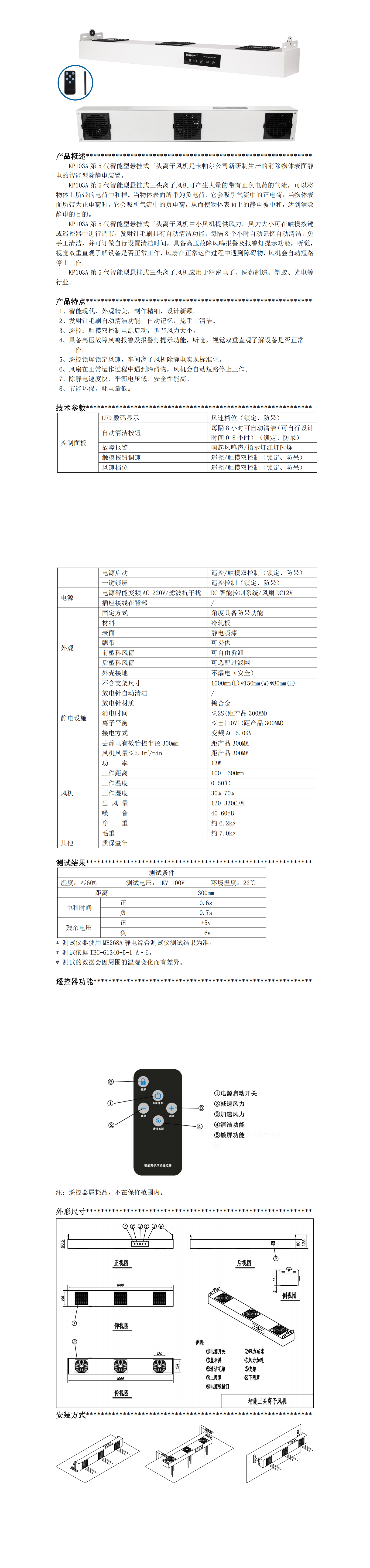KP103A第五代智能型懸掛式三頭離子風(fēng)機
