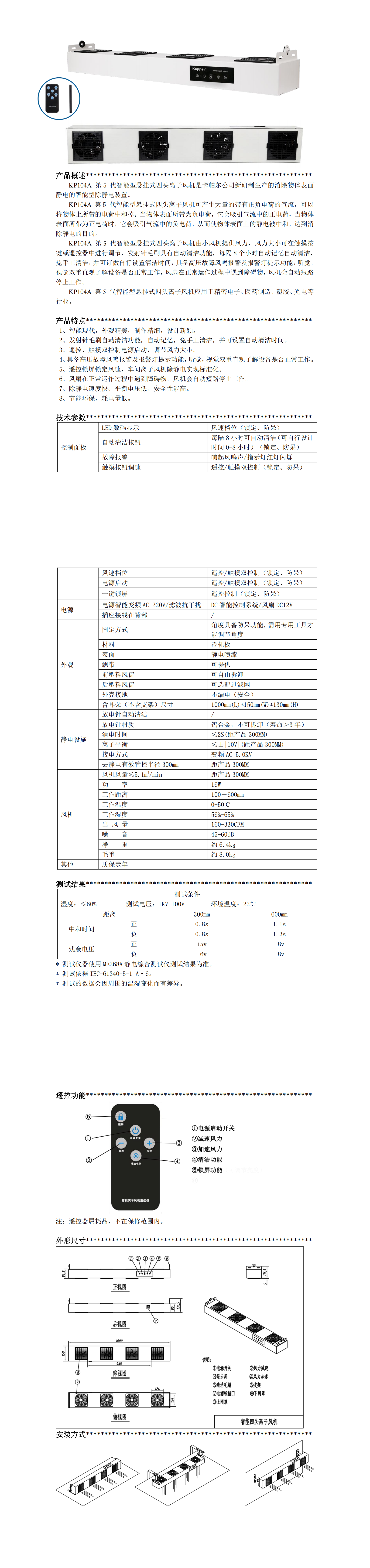 KP104A第五代智能型懸掛式四頭離子風機
