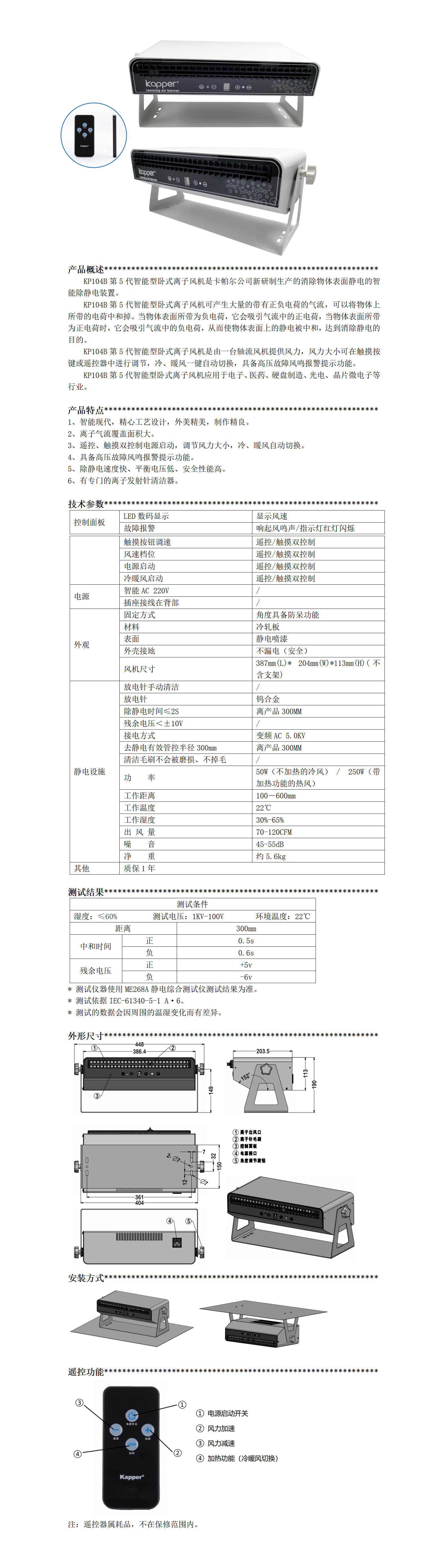 KP104B第五代智能型臥式離子風機